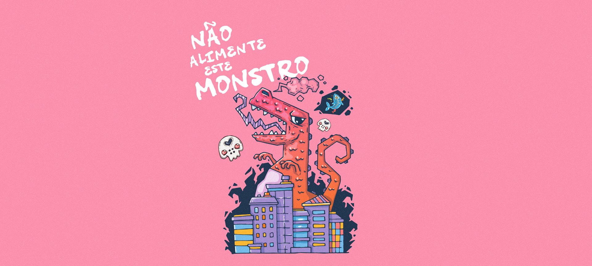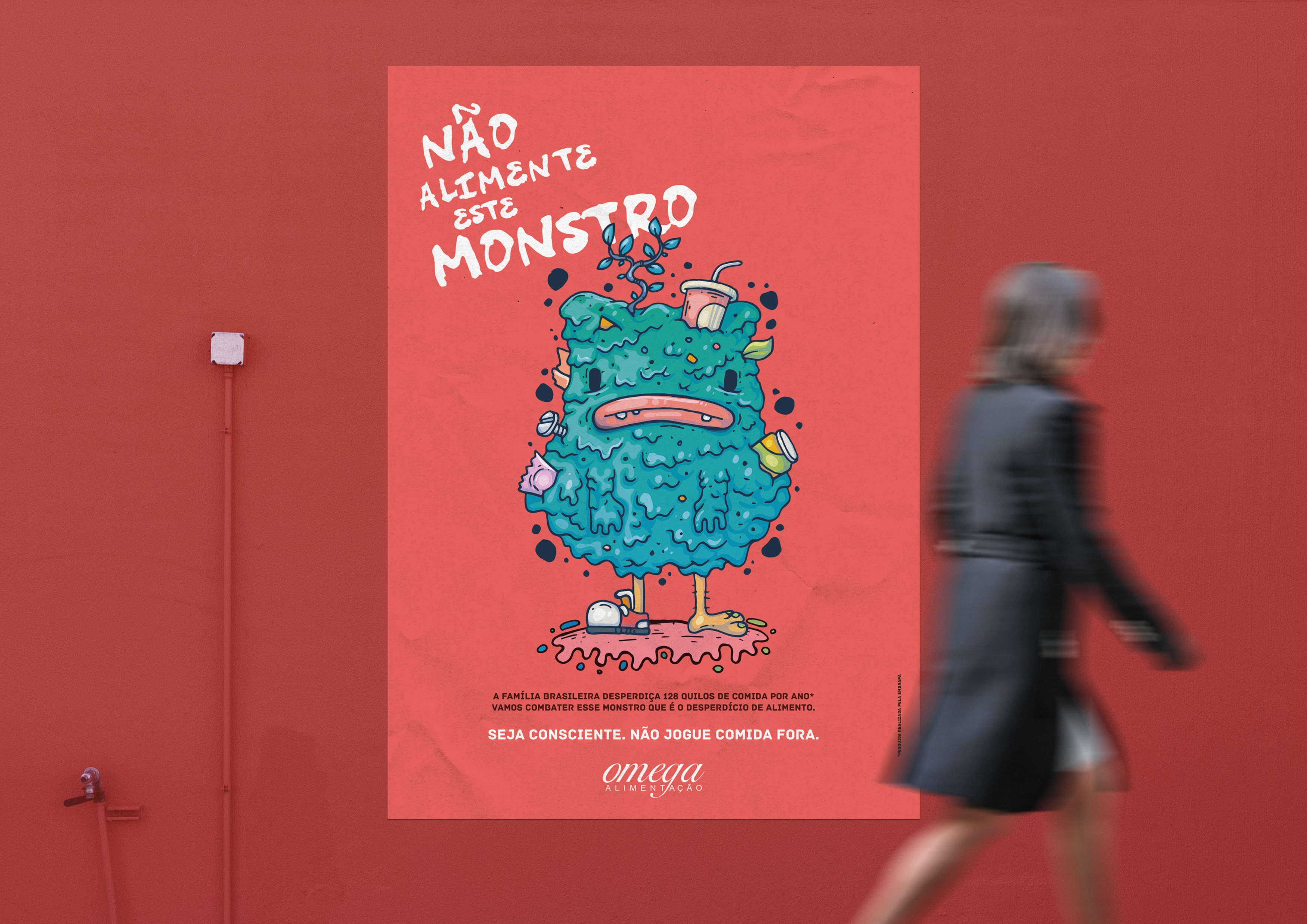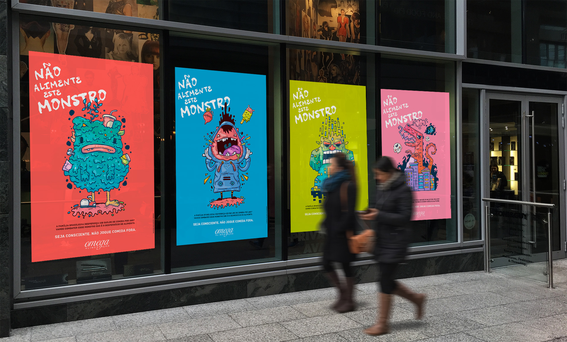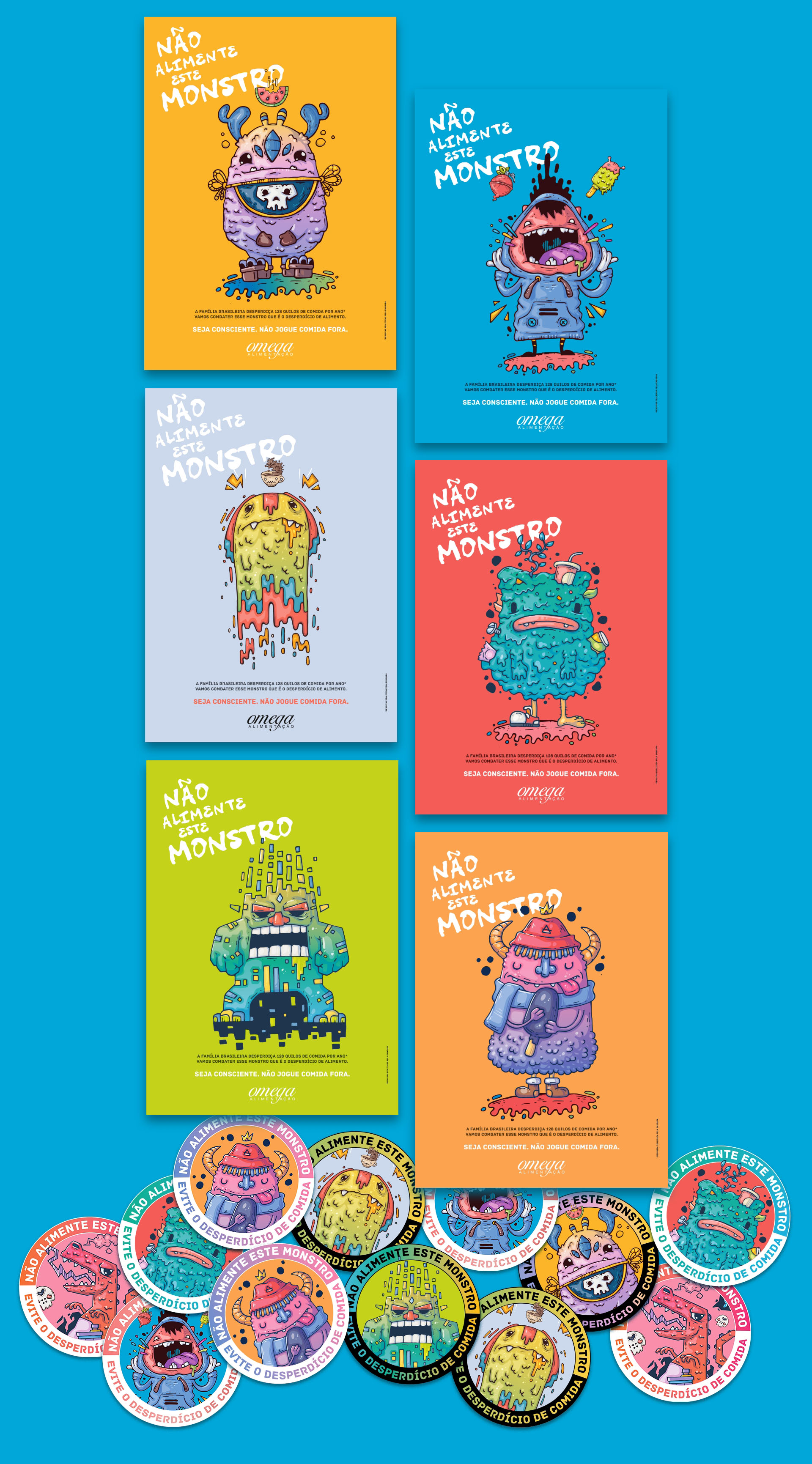 Criamos diferentes monstros que se alimentam de restos de comida, com isso conseguimos trazer uma diferenciação e a curiosidade para a informação da campanha.